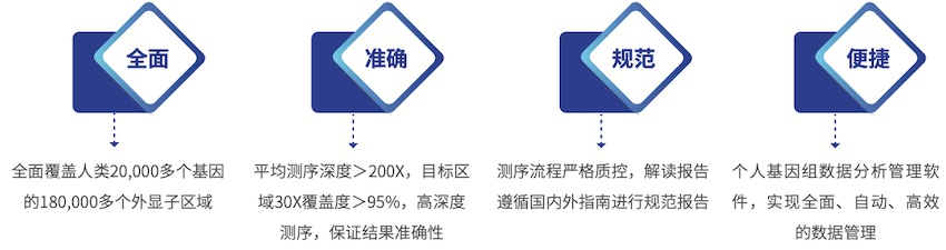 對(duì)超過20,000個(gè)基因(共計(jì)超過180,000個(gè)外顯子)進(jìn)行目標(biāo)區(qū)域富集與高深度測(cè)序,并利用個(gè)人基因組分析管理軟件自動(dòng)化分析測(cè)序數(shù)據(jù)。不僅能夠全面解讀OMIM數(shù)據(jù)庫(kù)中所有致病基因明確的單基因遺傳病,還可通過對(duì)家系樣本分析,尋找新的致病基因。