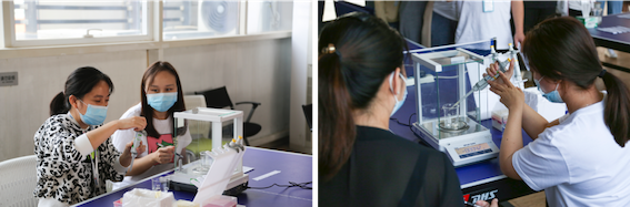 此次技能大賽共有來自生命科學服務部、醫(yī)學服務部、科研管理中心研發(fā)一部和研發(fā)二部、HLA服務部和實驗診斷部等部門共168名員工報名參加,比賽分為筆試與實操兩部分。筆試是基礎(chǔ),只有掌握扎實的實驗室規(guī)章制度和管理、生物安全、儀器操作注意事項等基礎(chǔ)知識,才能練就過硬的專業(yè)技能。今年筆試部分增加了新型冠狀病毒相關(guān)題目,結(jié)合疫情防控需要,強化相關(guān)檢測安全知識。實操部分將理論與實踐相結(jié)合,考驗實驗員移液器操作技能:分別取3次液體進行稱量,考核移液器使用的重復性、準確性及儀器操作是否規(guī)范,著眼業(yè)務能力和熟練程度比拼。