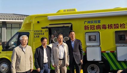 1月31日,由鐘南山院士、徐濤院士領(lǐng)銜的“廣州市實(shí)驗(yàn)室助力國家基層疫情防控萬里行”活動(dòng)在廣州國際生物島啟動(dòng),國家科技部、哈爾濱醫(yī)科大學(xué)附屬第一醫(yī)院、河北醫(yī)科大學(xué)第二醫(yī)院的代表通過視頻線上參加活動(dòng),廣州市委常委、黃埔區(qū)委廣州開發(fā)區(qū)黨工委書記周亞偉,廣州市人民政府副市長王東等省市有關(guān)領(lǐng)導(dǎo)出席現(xiàn)場活動(dòng)。博奧晶典全集成新冠病毒核酸檢測移動(dòng)實(shí)驗(yàn)室亮相此次活動(dòng),作為廣州實(shí)驗(yàn)室的重要組成部分,為基層提供快速、準(zhǔn)確、靈活的即時(shí)檢測。