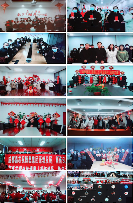 除主會場外,11個分會場的互動大拜年形式多樣、溫暖全場,又帶來了一波小高潮。上海、廣東、福建、內蒙、新疆、成都、重慶、鄭州......五湖四海的晶典人在此時此刻齊聚,帶來對博奧晶典最美好的新春祝福。