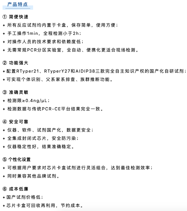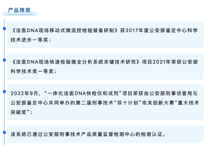 博奧晶典Quick TargSeq全集成自動(dòng)化現(xiàn)場快速DNA檢測系統(tǒng)是由公安部鑒定中心聯(lián)合清華大學(xué)、博奧生物集團(tuán)、北京博奧晶典生物技術(shù)有限公司共同開發(fā)的國內(nèi)第一款具有完全自主知識產(chǎn)權(quán)的全集成自動(dòng)化現(xiàn)場快速DNA檢測系統(tǒng)。該系統(tǒng)采用模塊化微流控芯片技術(shù),將樣本前處理、多重 PCR 擴(kuò)增和毛細(xì)管電泳全過程集成于一體,實(shí)現(xiàn) 2 小時(shí)“樣本進(jìn)-結(jié)果出”的法醫(yī) DNA 現(xiàn)場快速檢測,可在野外、車載等非實(shí)驗(yàn)室環(huán)境下運(yùn)行,為我國公安機(jī)關(guān)現(xiàn)場犯罪偵破、海關(guān)出入境檢查、重大公共安全事件的快速處置增添強(qiáng)勁利器。目前,博奧晶典DNA快檢系統(tǒng)已遠(yuǎn)銷俄羅斯、岡比亞等國,以先進(jìn)的技術(shù)裝備支持刑事科學(xué)技術(shù)邁向新臺階。