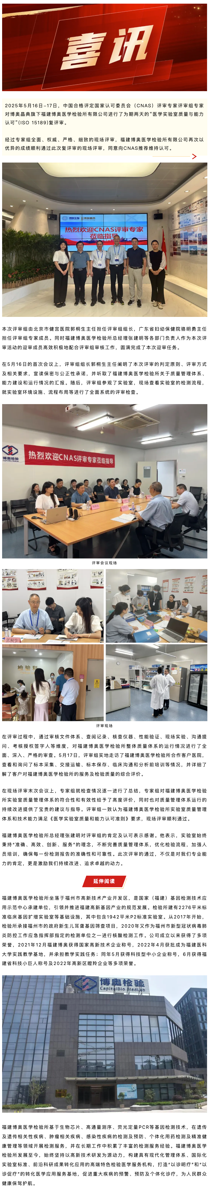 喜訊丨博奧晶典旗下福建博奧醫(yī)學檢驗所順利通過ISO15189復評審