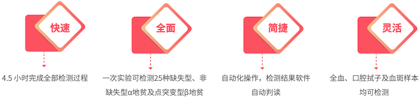 地中海貧血基因檢測試劑盒(微陣列芯片法)采用多重等位基因特異性 PCR 與通用芯片的技術對中國人最常見的地中海貧血基因突變位點及缺失片段進行檢測??梢淮涡酝瑫r完成 α- 和 β- 地中海貧血基因共 25 種突變的檢測,檢測結果可以輔助臨床診斷,也可用于流行病學調查、婚 檢及新生兒檢測等領域。
