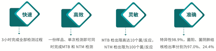 采用雙重實(shí)時(shí)熒光PCR技術(shù)和TaqMan探針技術(shù)實(shí)現(xiàn)對結(jié)核分枝桿菌(MTB)和非結(jié)核分枝桿菌(NTM)的區(qū)分檢測。 該試劑盒是目前國內(nèi)唯一獲得CFDA認(rèn)證的可以快速區(qū)分結(jié)核分枝桿菌和非結(jié)核分枝桿菌感染的PCR產(chǎn)品。