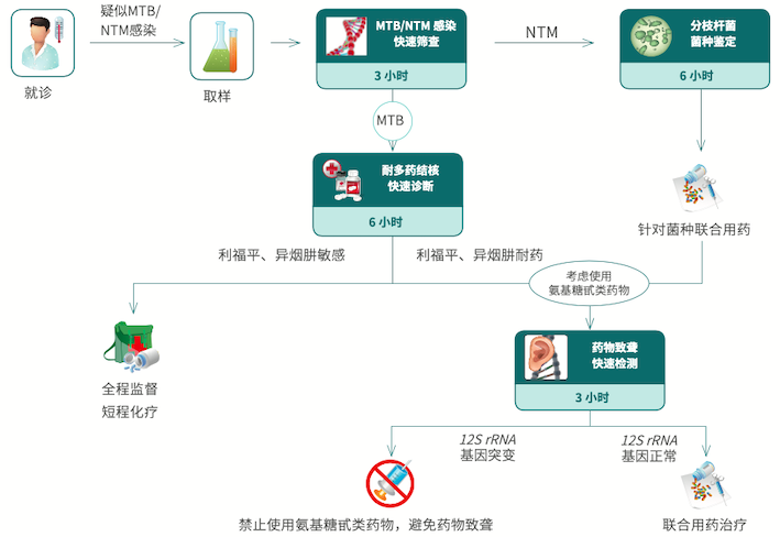 非結(jié)核分枝桿菌(NTM)與結(jié)核分枝桿菌(MTB)引發(fā)的疾病臨床表現(xiàn)十分相似,且NTM對(duì)結(jié)核病一線藥物異煙肼和利福平等的不敏感率達(dá)83.7%。感染早期,快速鑒定結(jié)核分枝桿菌和非結(jié)核分枝桿菌菌種,并制定針對(duì)性治療方案,對(duì)臨床治療意義重大。