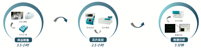 采用基因芯片檢測技術(shù),快速對兩種主要的一線抗結(jié)核藥物利福平和異煙肼的耐藥情況進行評估,進而實現(xiàn)對耐多藥結(jié) 核病的快速診斷。該試劑盒是國內(nèi)第一個獲得CFDA 認證的耐多藥結(jié)核病快速診斷產(chǎn)品。