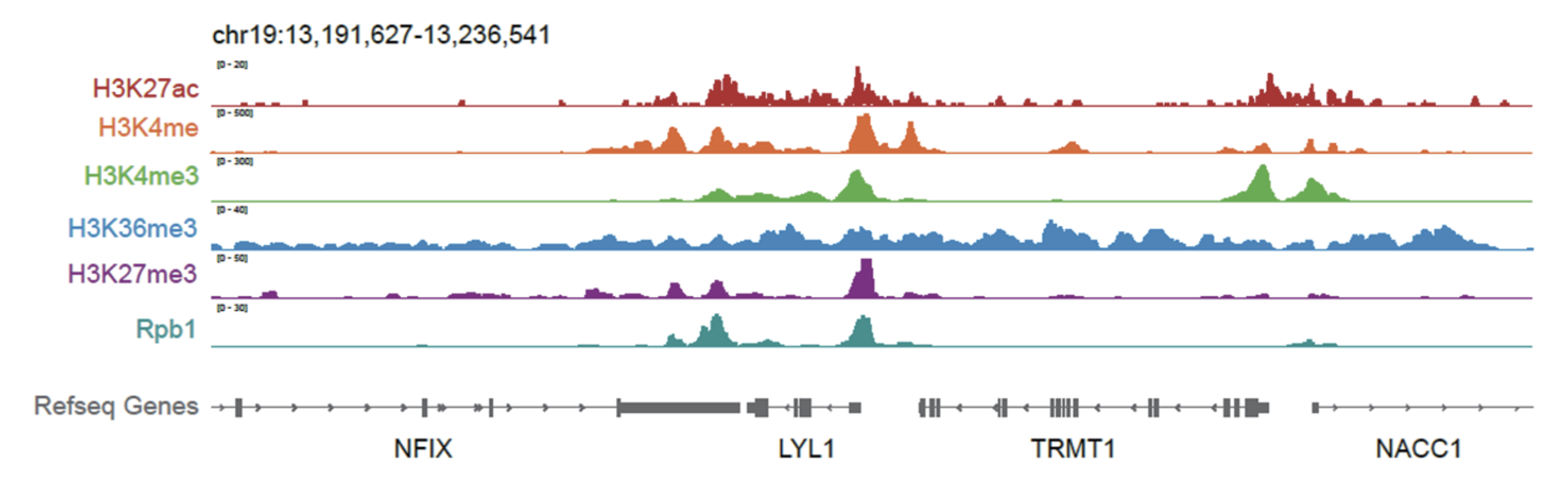 · 抗體位點H3K4mel,H3K4me3,H3K27me3,H3K27ac