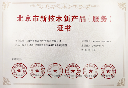 “北京市新技術(shù)新產(chǎn)品(服務(wù))認(rèn)定”旨在推動高新技術(shù)產(chǎn)業(yè)的發(fā)展,作為北京市新技術(shù)新產(chǎn)品,應(yīng)擁有自主知識產(chǎn)權(quán),并具有技術(shù)先進(jìn)性和創(chuàng)新性。本次喜獲“單細(xì)胞表面抗體及轉(zhuǎn)錄組測序服務(wù)”榮譽(yù)證書是各委員會對博奧晶典單細(xì)胞產(chǎn)品及服務(wù)創(chuàng)新能力的肯定,同時體現(xiàn)了博奧晶典單細(xì)胞產(chǎn)品服務(wù)在行業(yè)內(nèi)的技術(shù)優(yōu)勢。