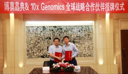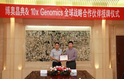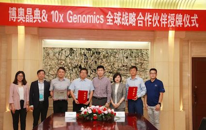仁科生物科技集團(tuán)有限公司執(zhí)行總裁邱雁南代表10x Genomics 與博奧晶典副總裁孫義民簽訂戰(zhàn)略合作協(xié)議,10x Genomics公司中國區(qū)總經(jīng)理江滔授予博奧晶典“10x Genomics一站式解決方案全球戰(zhàn)略合作伙伴”稱號,雙方旨在單細(xì)胞及空間組學(xué)等領(lǐng)域建立更為廣泛而深入的戰(zhàn)略合作關(guān)系,為客戶提供10x Genomics產(chǎn)品的一站式解決方案。