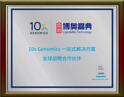 2021年6月28日,北京博奧晶典生物技術(shù)有限公司(以下簡稱“博奧晶典”)與10x Genomics公司“一站式解決方案全球戰(zhàn)略合作伙伴”簽約授牌儀式在京舉行。10x Genomics公司中國區(qū)總經(jīng)理江滔,中國北方區(qū)銷售經(jīng)理付大超,仁科生物科技集團(tuán)有限公司執(zhí)行總裁邱雁南,博奧晶典副總裁兼科研合作服務(wù)中心主任孫義民、副主任李彥澤、產(chǎn)品總監(jiān)孟晨、銷售總監(jiān)龐博等出席簽約授牌儀式。