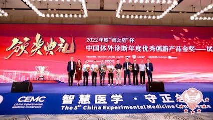 在第八屆中國實驗醫(yī)學大會上,隆重舉行了2022年度“創(chuàng)之星”杯中國體外診斷年度優(yōu)秀創(chuàng)新產品(儀器/試劑)頒獎儀式。憑借過硬的創(chuàng)新技術與廣泛的市場應用,博奧晶典明星拳頭產品——二十三項遺傳性耳聾基因檢測(微流控芯片法)榮獲2022年度“創(chuàng)之星”杯中國體外診斷年度優(yōu)秀創(chuàng)新產品金獎。這是行業(yè)對于博奧晶典的高度認可,同樣激勵著博奧晶典矢志創(chuàng)新、持續(xù)深耕、砥礪前行,不斷帶來更多優(yōu)質產品。正如頒獎詞所說,“作為精準醫(yī)療的標志性成果,博奧晶典遺傳性耳聾基因檢測產品不斷迭代、銳意進取,用中國芯造福萬千家庭,是耳聾防控最有力的踐行與推動者!”